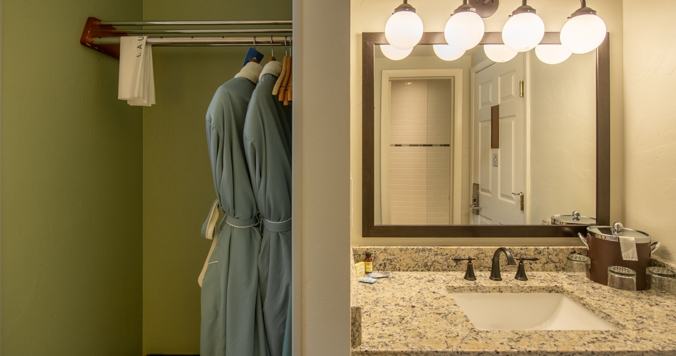 After soaking in the pools, return to relax in this room with one king bed, mini-fridge, and coffee maker. This room in the original Spring Inn Motel building is like a step back in time to a place that is intimately connected to the history of The Springs. These rooms are on one level and are our closest accommodations to the Bathhouse, soaking pools, fitness and yoga studio. The perfect room for the budget-minded traveler. Pets allowed with a fee. Parking is available.