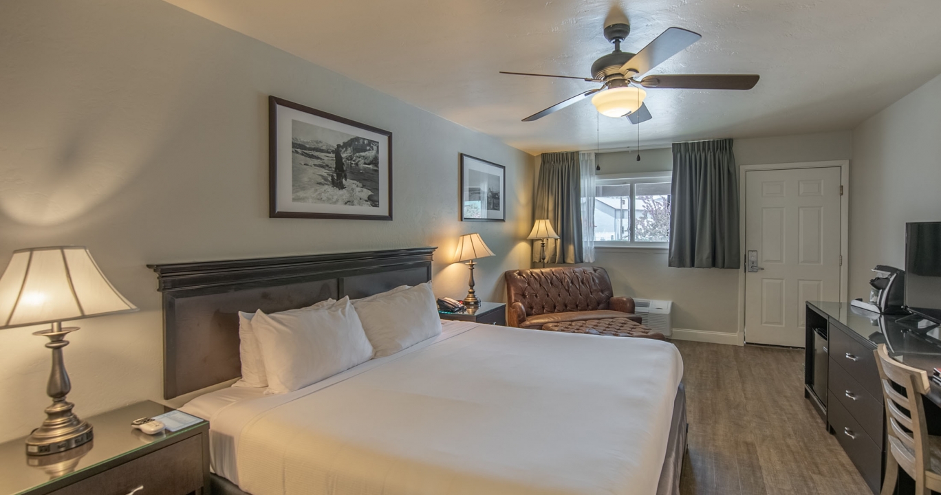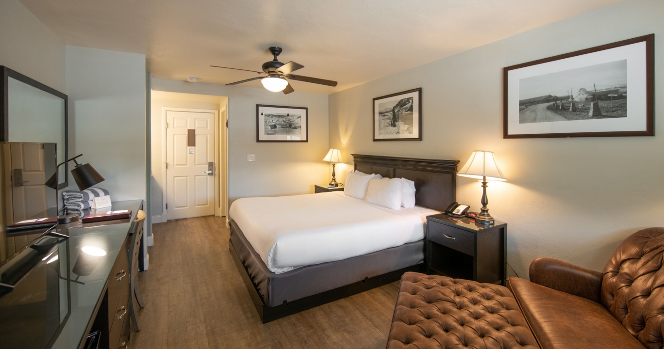 After soaking in the pools, return to relax in this room with one king bed, mini-fridge, and coffee maker. This room in the original Spring Inn Motel building is like a step back in time to a place that is intimately connected to the history of The Springs. These rooms are on one level and are our closest accommodations to the Bathhouse, soaking pools, fitness and yoga studio. The perfect room for the budget-minded traveler. Pets allowed with a fee. Parking is available.