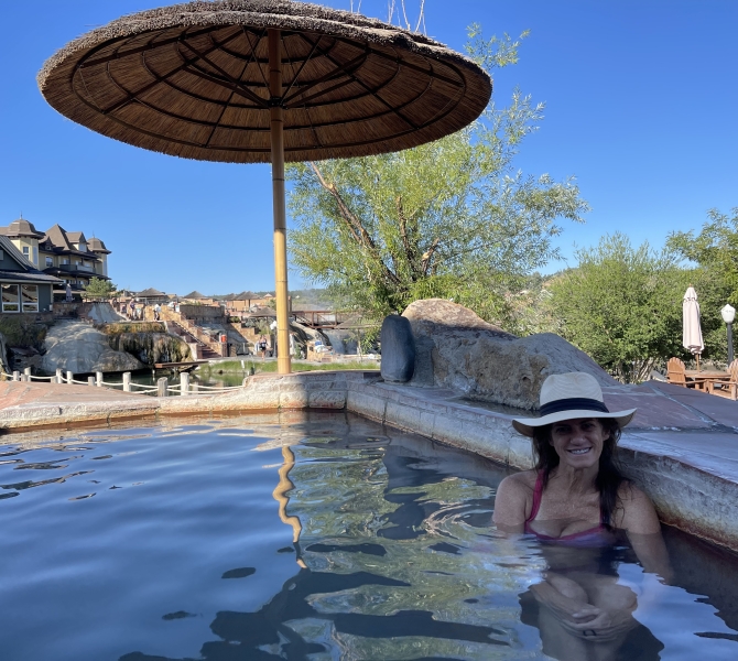 I have fruit for breakfast, and sometimes I’ll treat myself to something from Two Chicks and a Hippie or a breakfast bagel sandwich from Boulders Café. I always do stretching and breathing exercises before heading into town. After a car accident I had, The Springs have become an integral part of my own wellness routine. Soaking alleviates my neck and shoulder pain, so I am at The Springs a lot. Supplementing my soaking with marijuana and THC salve also helps.